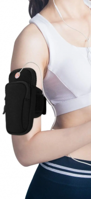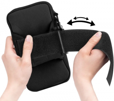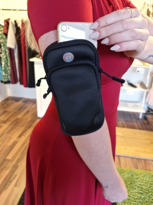 En svart danseveske som du enkelt kan feste til armen med borrelås og bruke mens du danser uten at den er i veien. Selv om den ikke tar mye plass, har den plass til mer enn du tror! Sportsvesken har to lommer med glidelås. Du får enkelt plass til mobiltelefon, kredittkort og nøkler. Det er også et lite hull foran til ledningen på hodetelefonene dine hvis du vil høre på musikk.